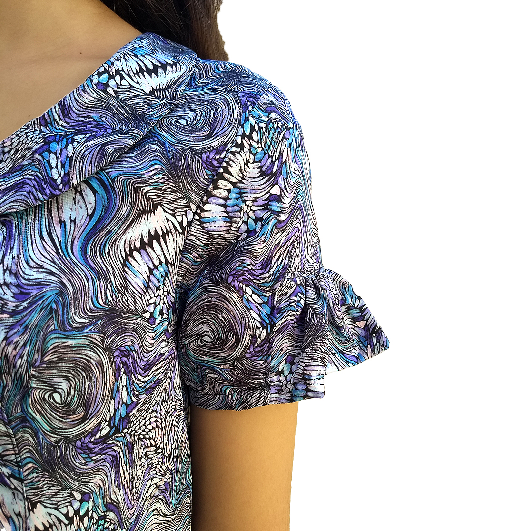 Manga con frunce y volado.