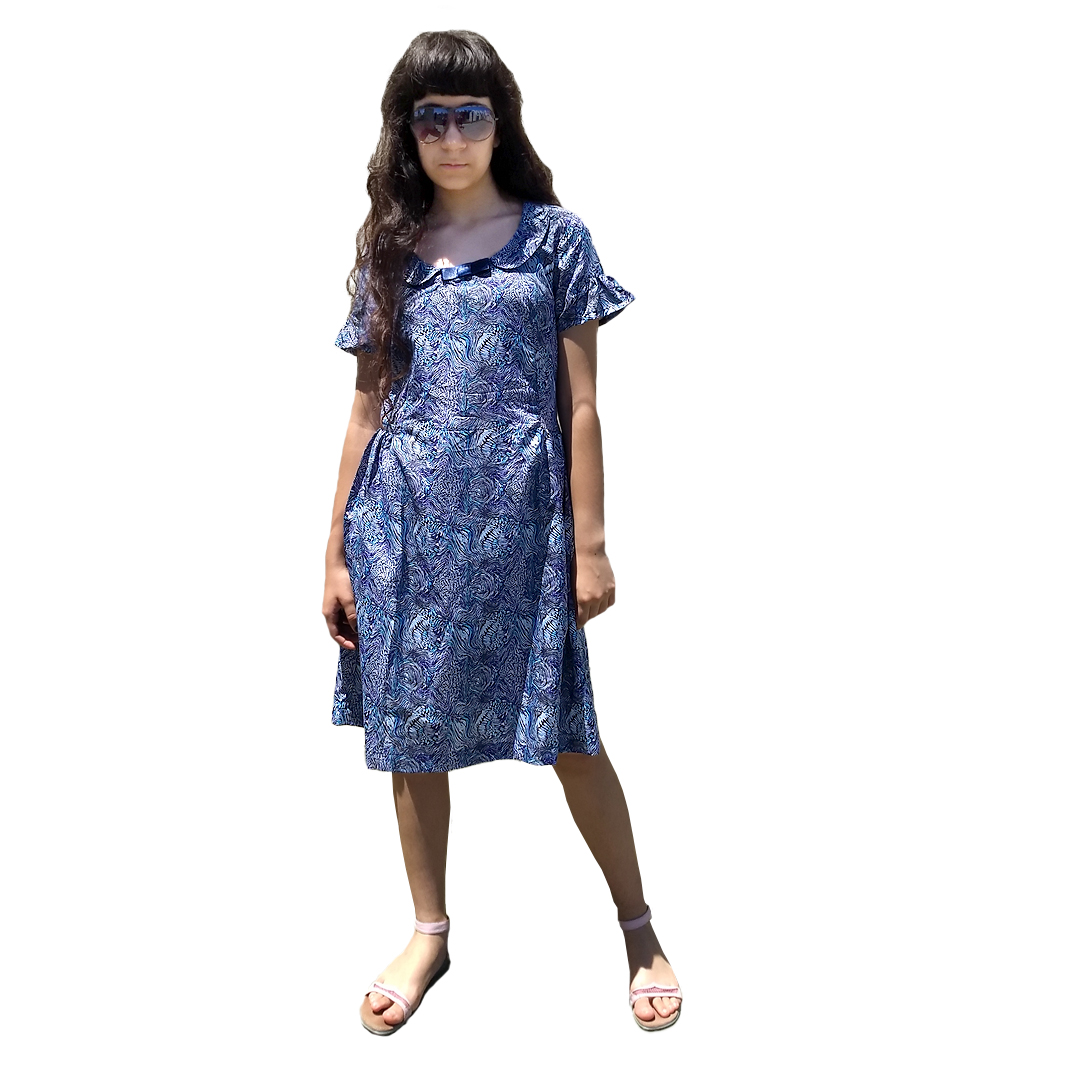 Vestido de seda de poliester estampado.
